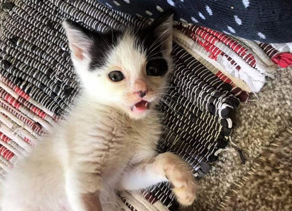 “It was a sad sight. The poor little thing was in a bad way. His eyes were stuck together and he was very weak. How he even had the strength to cry surprised me, but that was a good sign. He’s a little fighter and we knew what we had to do.