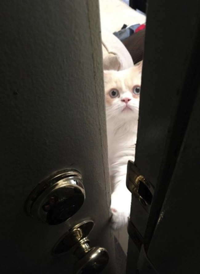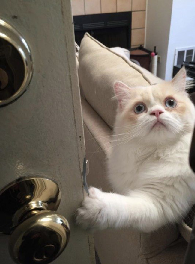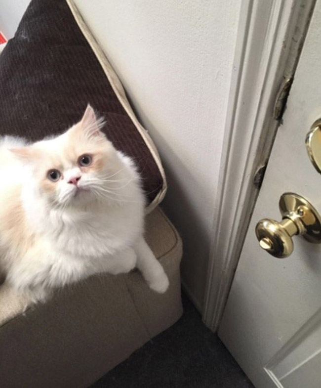 Reddit user Jes Klass has a cat named Ghost. Every time Jess leaves her apartment to go to work, Ghost gives her a super sweet, sad-looking face that says: “don’t leave me!”