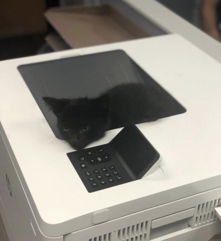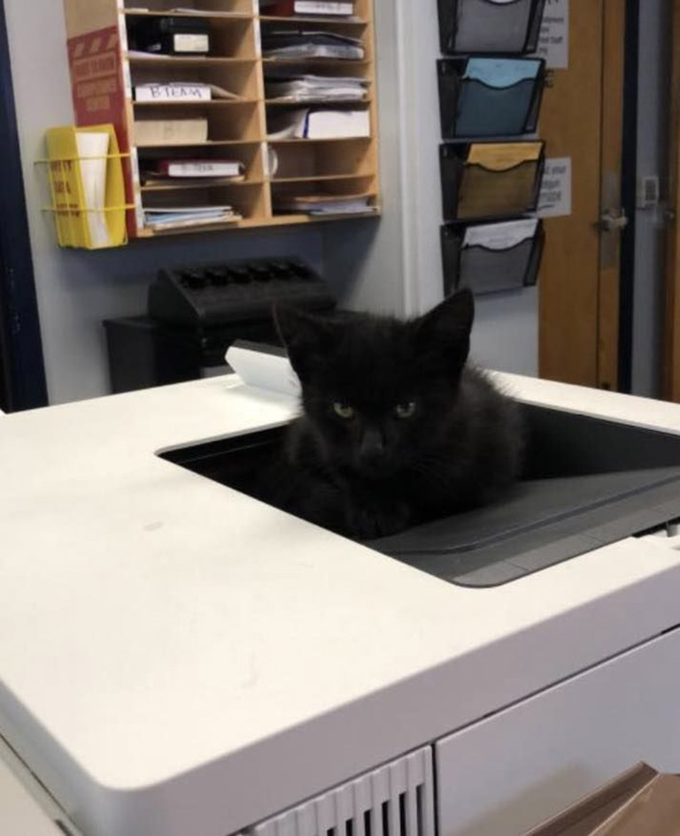 I guess it was time for a nap because he tried out a few different places in the office before settling down on the paper tray of the printer.