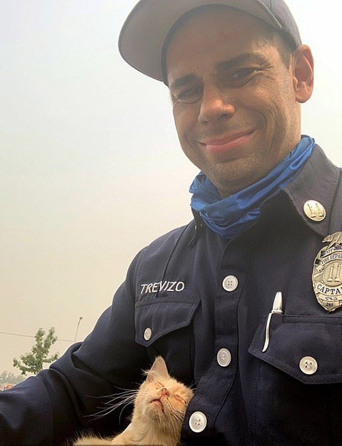 Trevizo said he saw in the firefighters’ party text that another fire captain had discovered and saved a cat hidden in the wreckage.