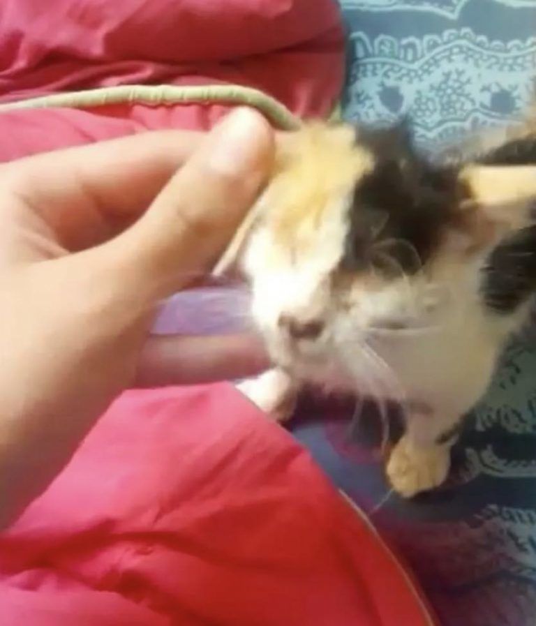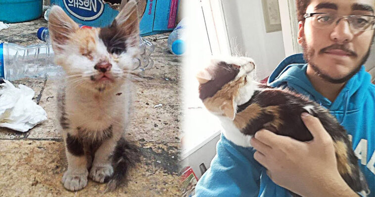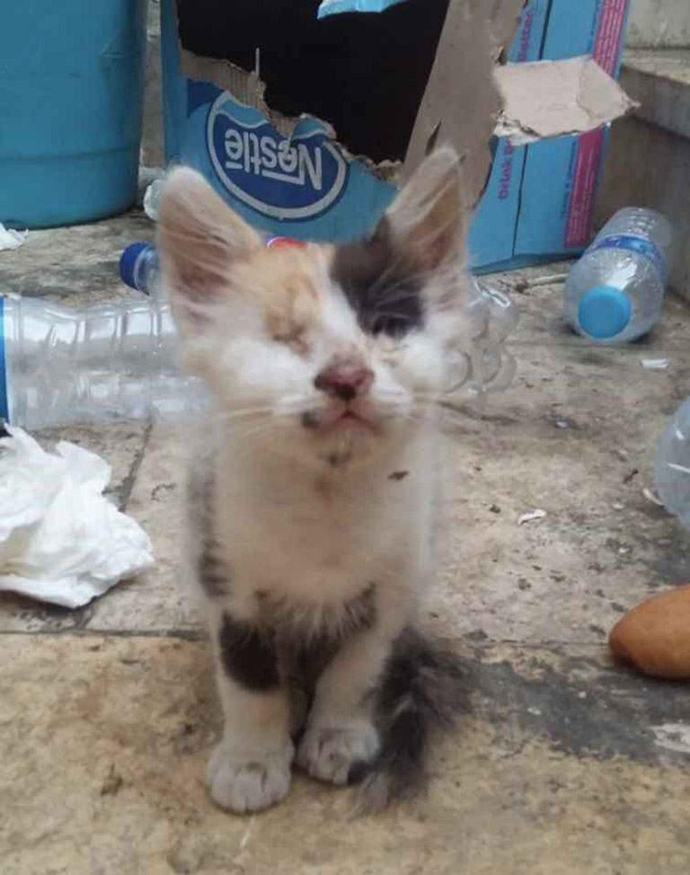 One day a man discovered a kitten that was living in the stairwell of his building. He instantly took the kitten inside but it wasn’t until later that he realised the little kitty was born without eyes.