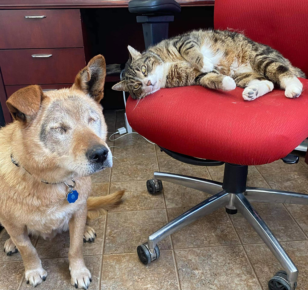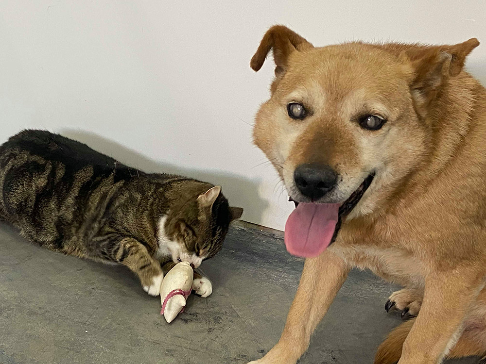 Spike, a mixed breed dog, and Max the cat are a team with an unbreakable bond. They are an unlikely pairing but remind us to enjoy life and keep our loved ones close.