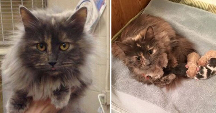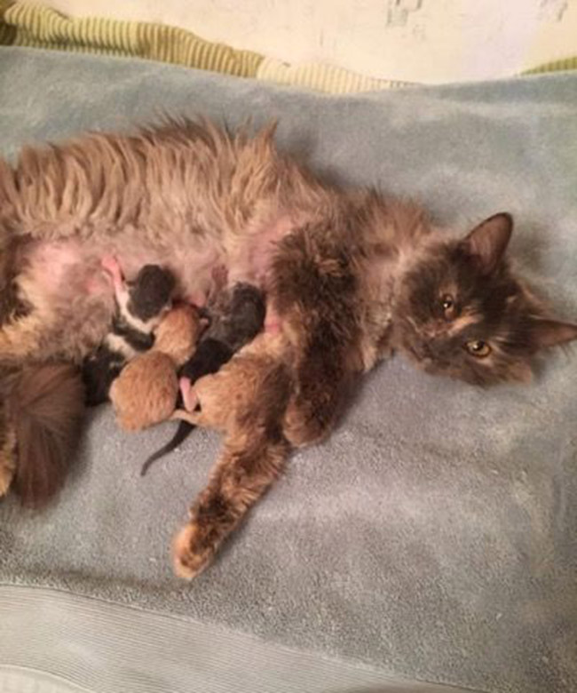 Luckily she soon went into labour and four healthy kittens were brought into this world.