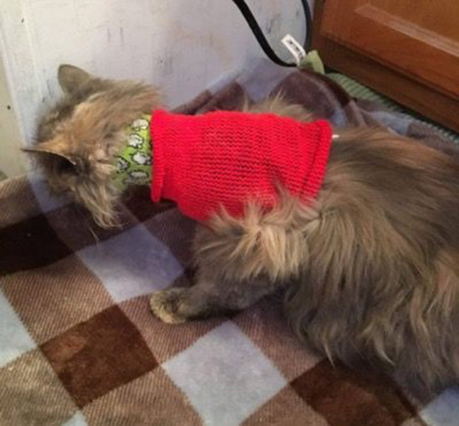 This poor calico cat, Sophia, turned up at Here Kitty Kitty Rescue, an Indianan animal shelter, with a lot of things on her plate. A new litter of kittens, a new home, and a new illness.
