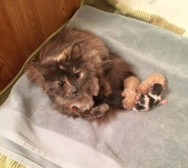 Before long Sophia began eating on her own and soon regained her health with no signs of infection. Her four babies were healthy and happy by her side.