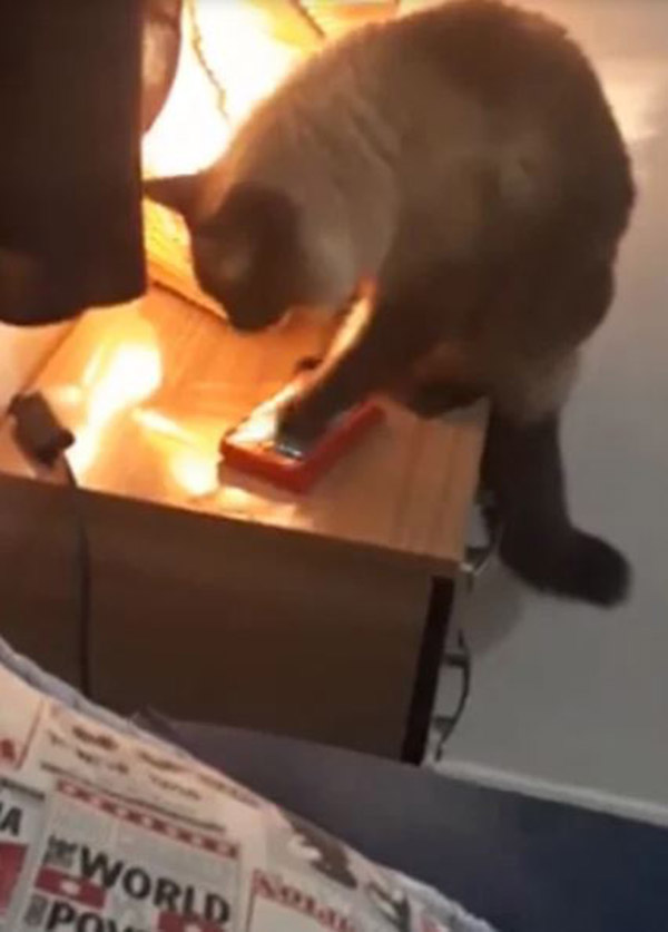 Joaquim then pawed at the phone screen aimlessly until the alarm no longer made a sound. The two women from Sao Paulo, Brazil, can be heard giggling at Joaquim, shocked at what their cat had been doing all this while.