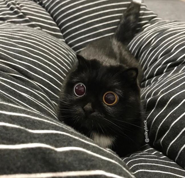 According to Insider Australia, this adorable feline has heterochromia and it’s a rare genetic condition which causes her eyes to be different colours. This cute feline has one blue eye and one yellow eye which look as round as marbles.