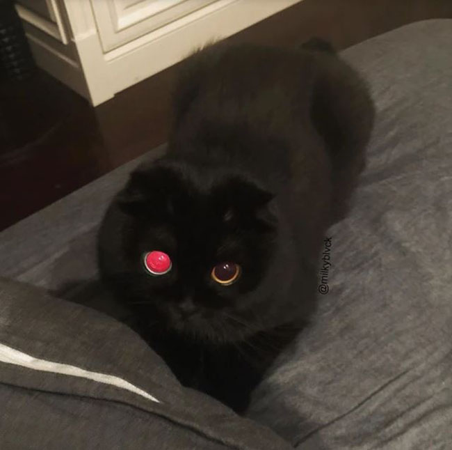 It’s also completely normal for an odd-eyed kitty’s blue eye to look red in pictures. That’s because of the melanin layer in the blue eye which clears away some shades of light, according to Cat Health.