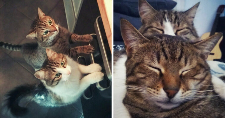 Fred was orphaned, scared, underweight, a month and a half old “fits in your palm” tiny kitty when he was rescued from the parking lot and introduced to a two-year-old male tabby, Karl.