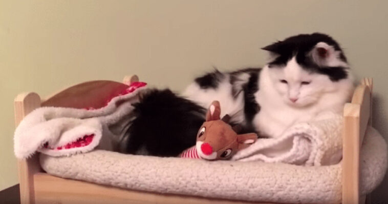 Well, the owner of the cat in the clip below doesn’t have to worry about his cat not going to bed at night. That’s because she actually puts herself to bed every single night, and it’s even more adorable than it sounds.