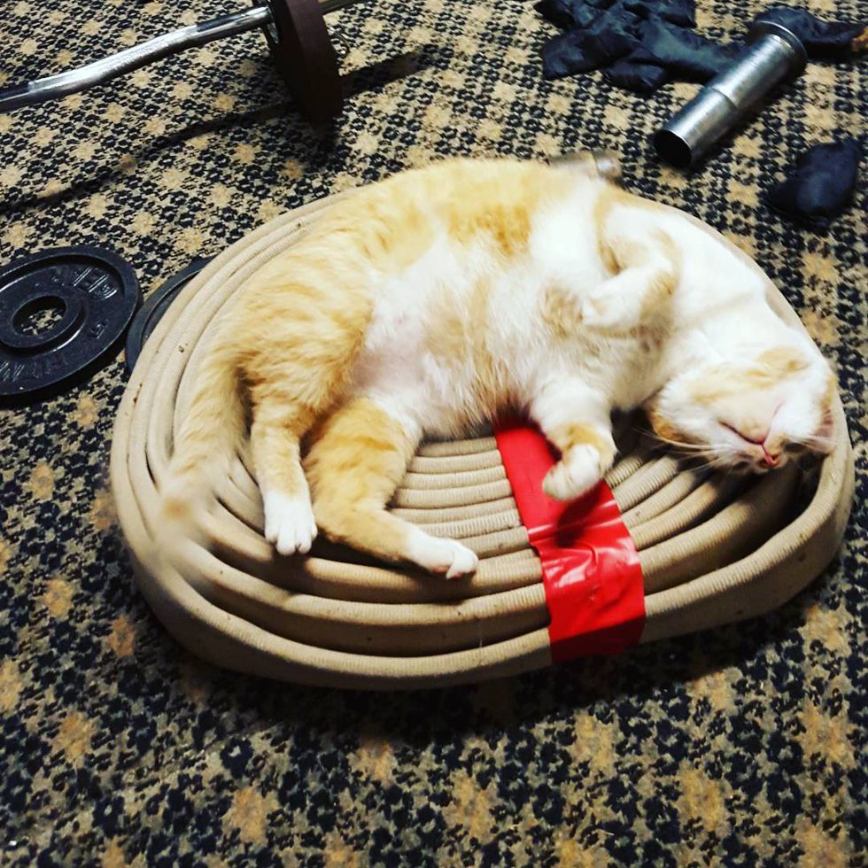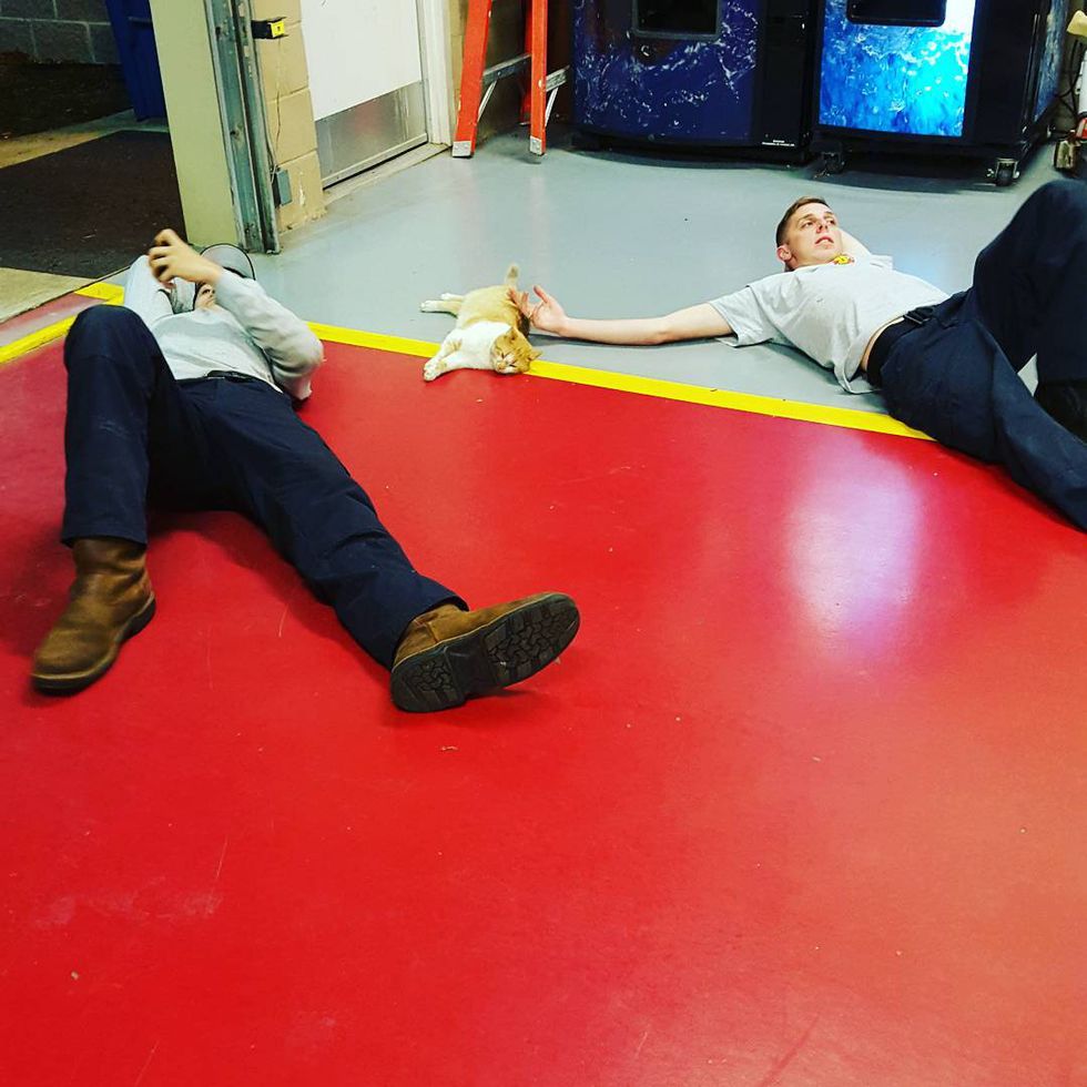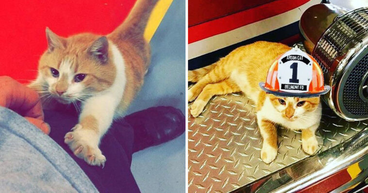 A ginger and white stray cat wandered into a firehouse one day, looked around, liked what he saw and decided to make it his home.