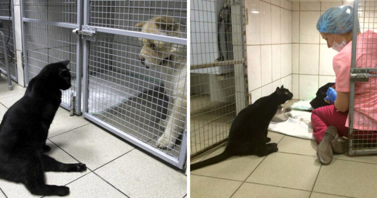 Meet Lucifer, a true angel and star employee to all the sick animals at a vet clinic.