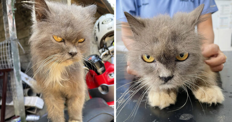 Finding a crate, we popped Billie Blue inside and took her to the vet. Her owner had thought Billie Blue was a ‘he’, but it turned out she was a ‘she’. She was around 10-years-old and likely had dwarfism, just like the original Grumpy Cat. She had major parasites, was riddled with fleas, and was missing her front teeth. Poor Billie Blue – she had lived a very sad and uncomfortable life up until we found her.