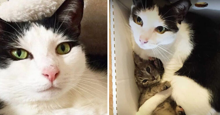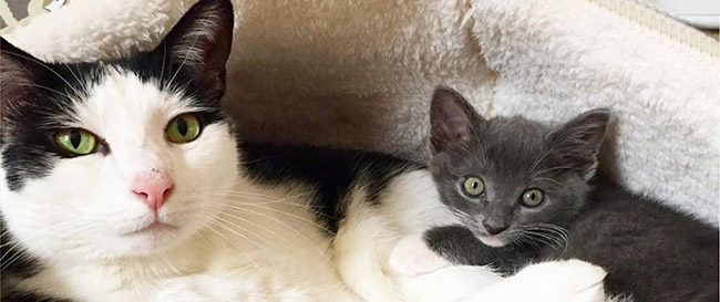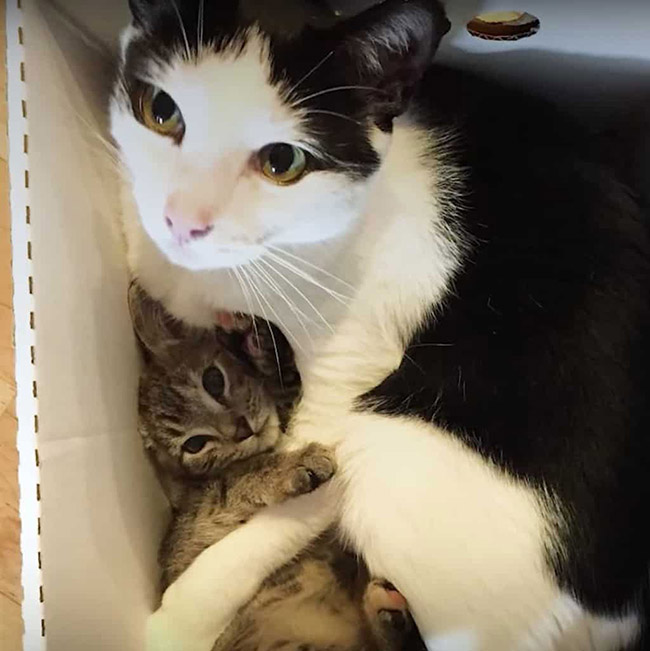 This is Pokey! He’s a kitty that has learned to open doors himself and for the cutest reasons. He loves foster kittens and loves hanging out with them!
