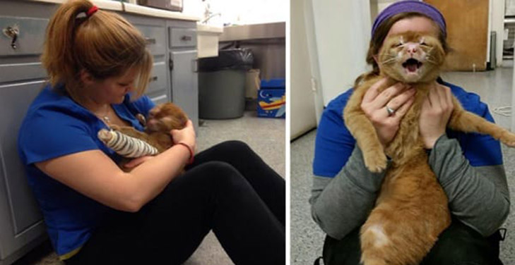 Russell, the cat, was rescued a few years ago after surviving a home fire. He suffered third-degree burns all over his body when he was taken to Animal Emergency Hospital and the Emergency Care Center in North Carolina. No one expected him to spend the night, but the vets did not surrender. Russell, despite numerous burns he made it impossible to live.