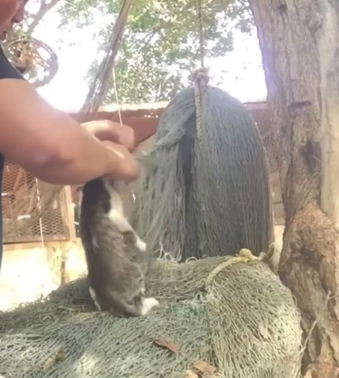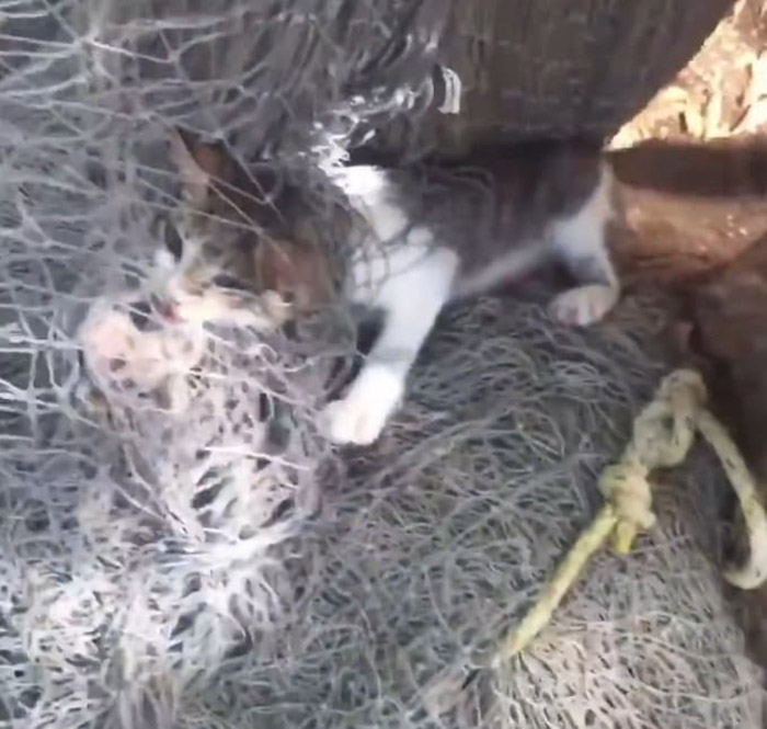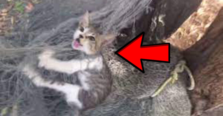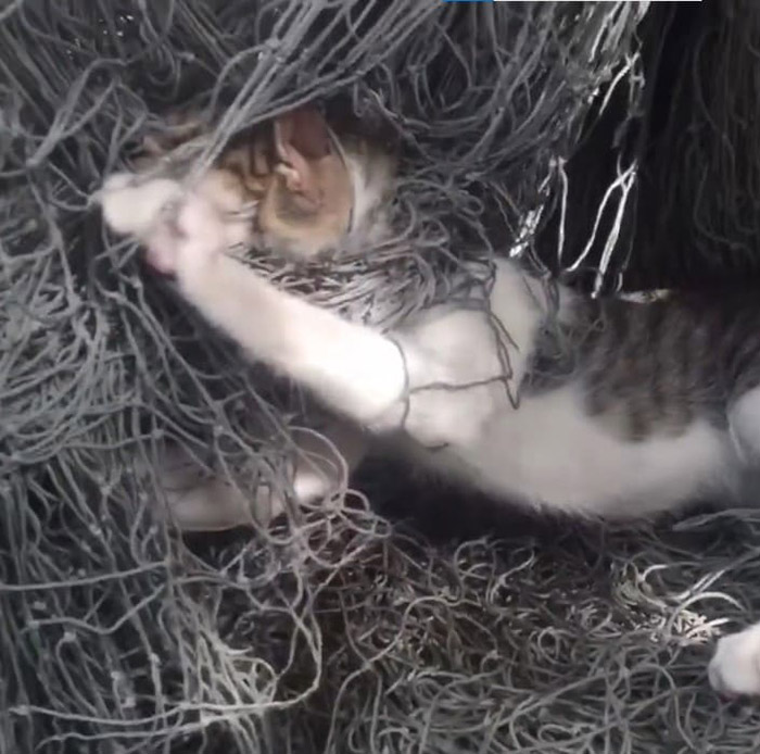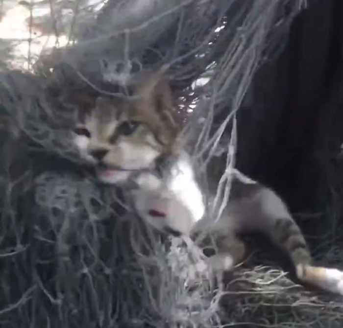A unfortunate cat was trapped in a fish net for three days, but no one came to her rescue. People hesitated to release her from the net because they were afraid she might bite them. She was left to battle for her life after being neglected. Fortunately, a brave guy ran into danger to save her. Even though he knew he may be hurt, he did his hardest to save the small baby.