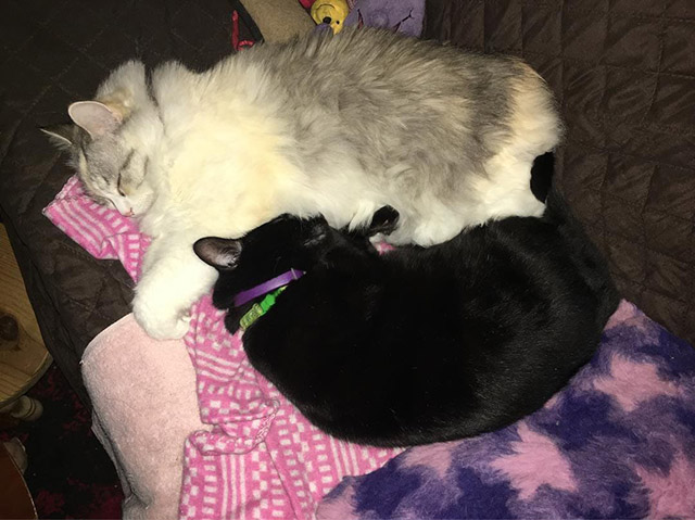 Regrettably, the raccoon died in 2015. The kittens were heartbroken at the loss of their best buddies, so Eryn decided to adopt them.