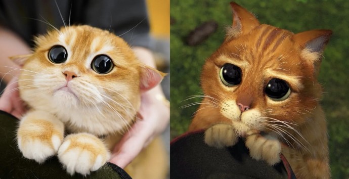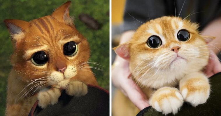 You’d think that those incredible eyes could only exist in animation, but we’ve stumbled upon a kitty who is Puss in Boots spitting image!