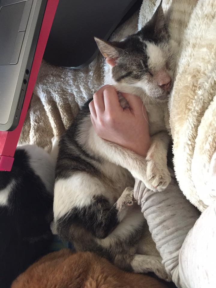 The pair have rescued a large number of cats with special needs, elderly, sick and otherwise unacceptable cats from the DFW TX region, but Nobbs is no different from any other cat they have ever encountered.