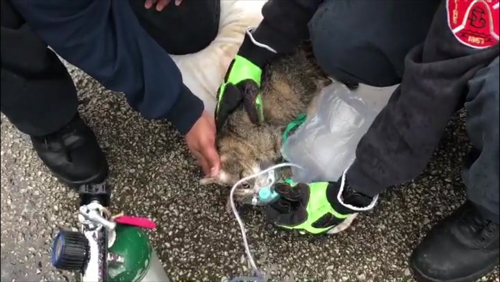 Firefighters offered their oxygen to the cat and at all costs they tried to bring it back to life.