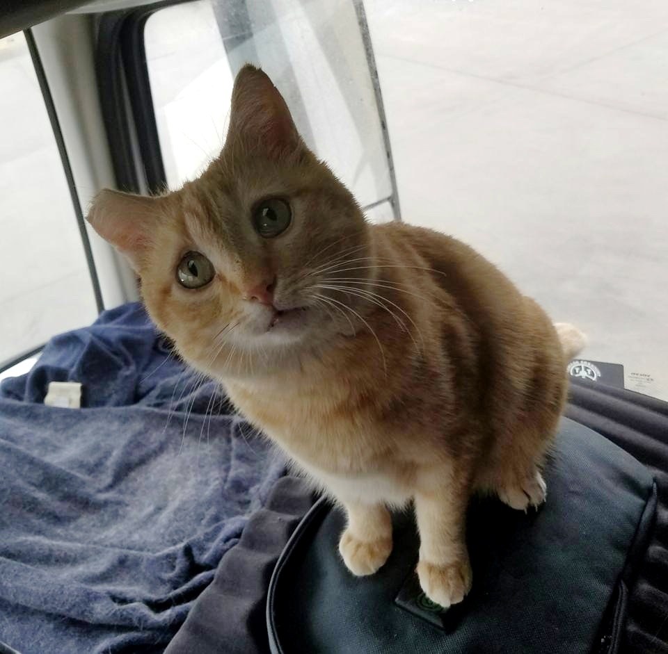 Percy entered Robertson’s life and quickly became his ideal travel companion for long-distance journeys. The sweet-natured feline enjoys travelling in the vehicle and taking in the scenery. Paul’s trucking lifestyle was easy for Percy to adapt to. They collaborate on everything, work as a team, and live as a family.