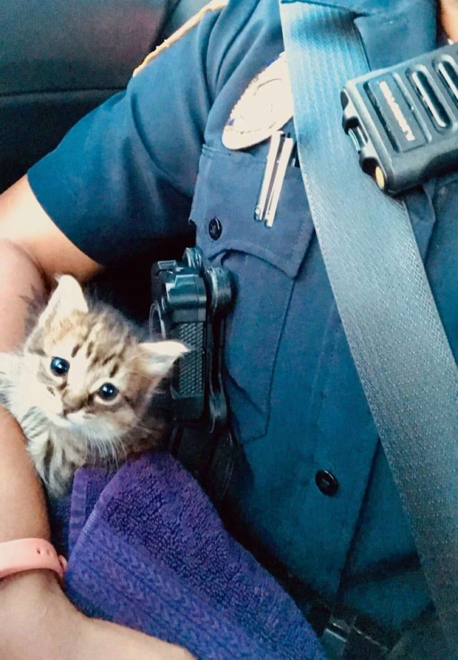 The kitten selected Officer Rowsey as her new mother after only a short time in her company. And Rowsey had no choice but to accept it.