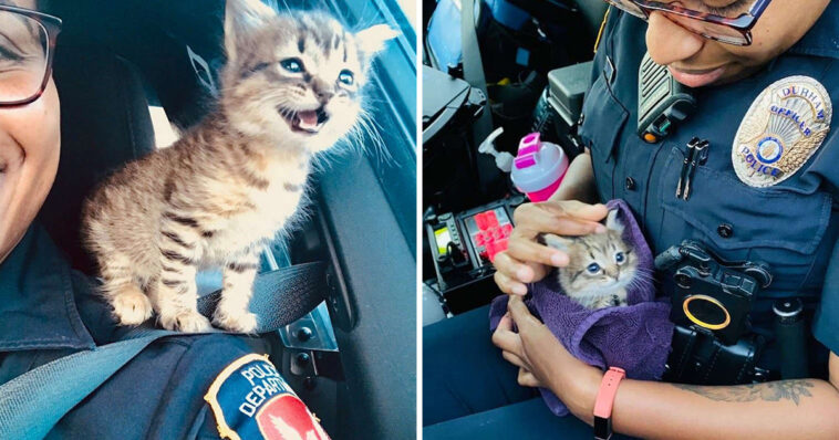 “[They] searched the neighborhood in an attempt to find the kitten’s owner or its mother,” the Durham Police Department wrote. “But [they] had no luck.”