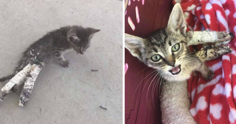 When their parents saw the kitten and her broken legs, they contacted Hamel, a famous woman in the rescue community with hoping she could help the poor kitten.