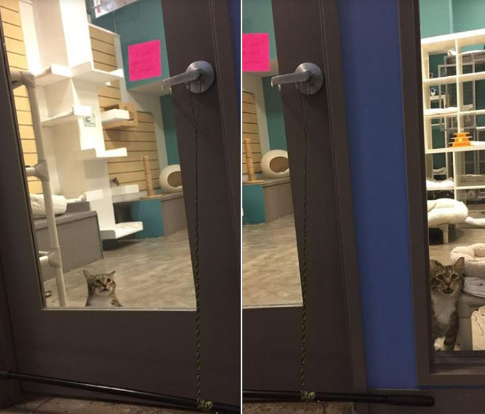 Luckily, Quilty’s antics may have worked. It has been revealed that he is currently staying with potential adopters, who report that he’s been a very sweet cat. No news yet on whether he’s been opening doors at his possible new home.