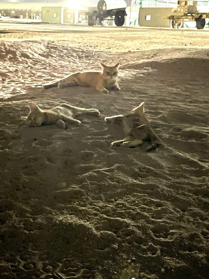 “We are very happy to say that Sergeant Whiskers and her kittens are doing great. They have all been seen by a veterinarian, and are in good hands. They are being well cared for and getting stronger every day so they can make the flight to the U.S. safely.”They told us about the most difficult part of caring for the animals on a campsite: ”