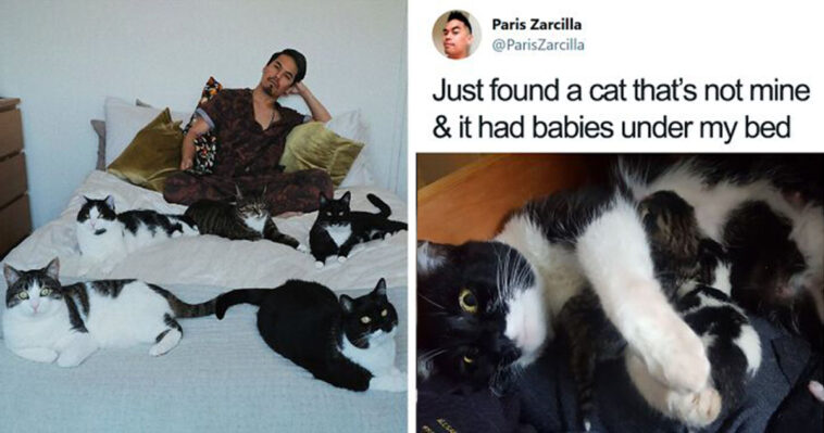 For those unaware, in 2018 Paris Zarcilla walked into his room to find a stray mama cat who’d birthed 4 kittens