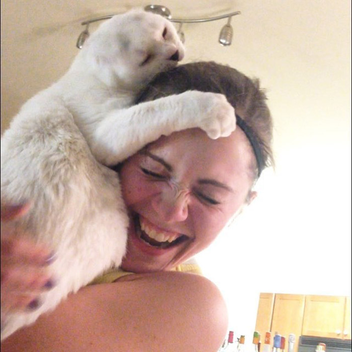 She had been raised on a farm, so cats had always been a part of her life. “I told myself that when I was ready for a cat, I would only adopt an adult cat with special needs (the ones that are so much harder to get adopted).”