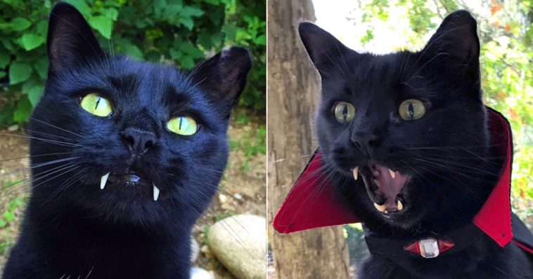This kitty, although he has fangs, stole a woman’s heart after she rescued him from the streets.