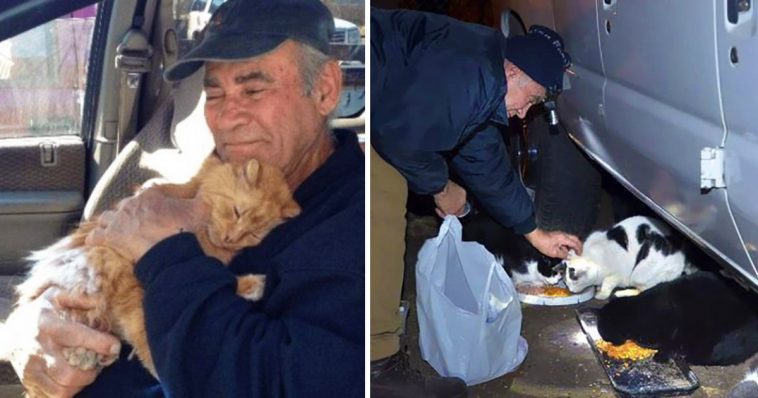 He started caring for the cats after he saw people ignoring a hungry kitten begging for food.