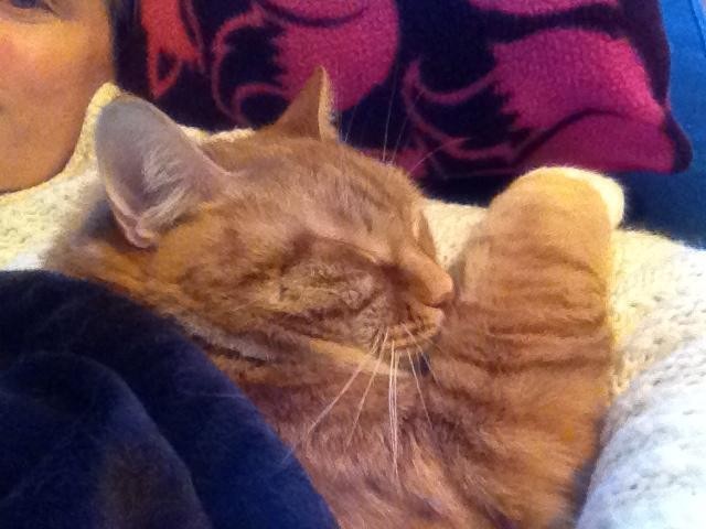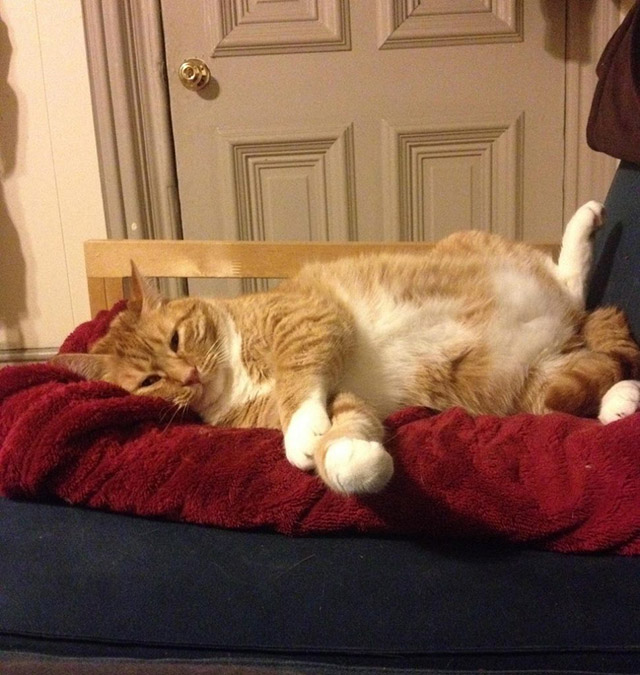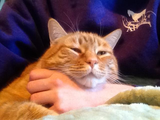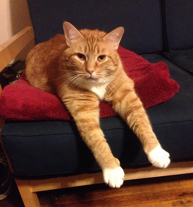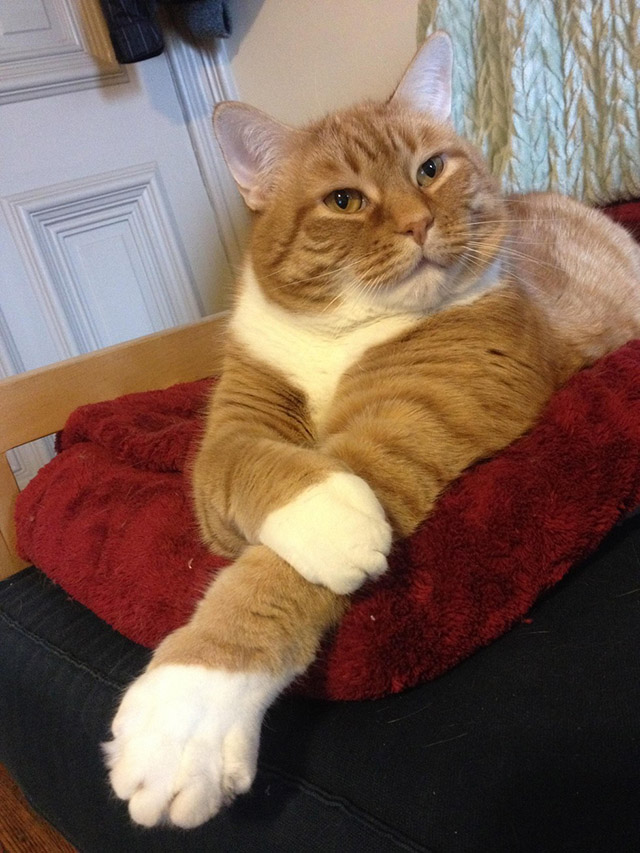 A ginger tom cat had been wandering around a neighborhood for quite some time. “One day (he) parked himself on someone’s front porch and stayed there for about 6 weeks, until they decided they couldn’t care for him any more,” – Tegan.