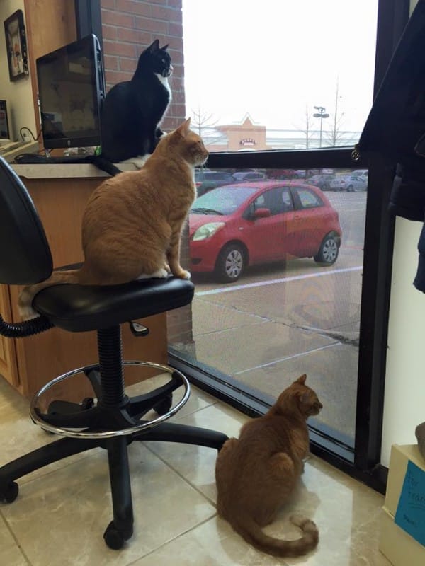 Just a normal day at the office for them. They love to greet and welcome everyone that comes through.