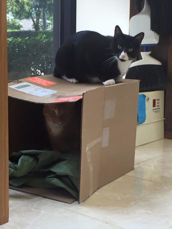 Carl, the black and white cat, is the “bad boy” who likes prove to the dogs that he is tougher than them.