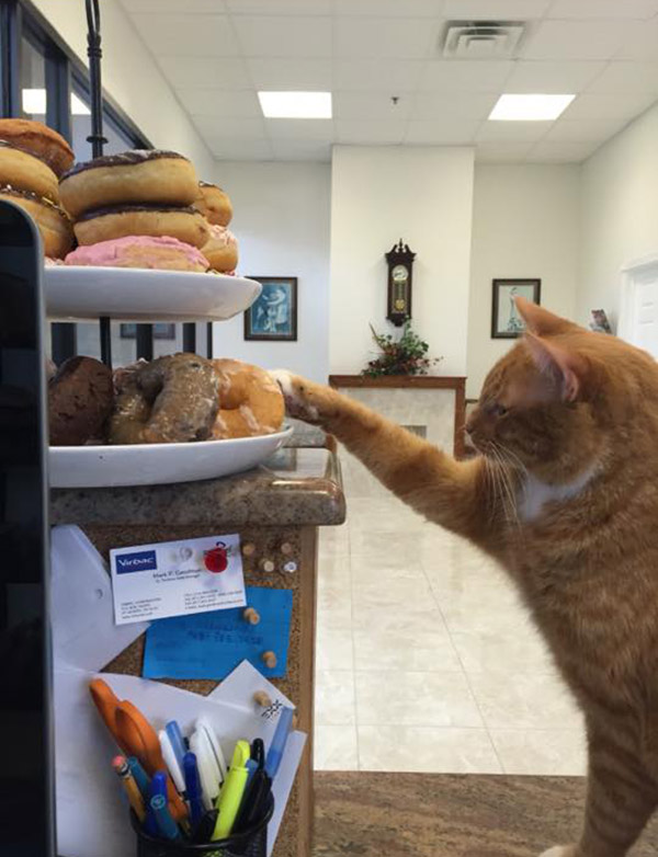 Roger enjoys the art of stealing donuts.