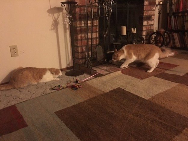 One day, two tabby cat brothers got seperated. They each got different humans, and never saw one another again… Than two single people, Cathleen Cavin and Brian Herrera matched on Tinder, and Cathleen noticed Brian’s cat in one of his pictures and truly thought that it was her cat in the picture. The cat was identical to her cat! The rest was history from there on…