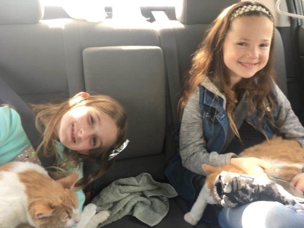 Pictured above is Cavin’s daughter Cali holding Ozzy and Herrera’s daughter Ruby snuggling with Butter.