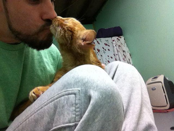 This little cat was born with four ears. He is also blind. But, he makes up for it with all the love he gives off to others.