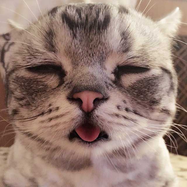 Luhu’s large, weepy-looking eyes are actually a side effect of an early eye infection. His owner Maggie explains: “He had a pretty major operation on his eyes, so Luhu always opens his eyes pretty hard when he needs look at something.” Despite his sad appearance we have been assured that he’s a very contented kitty and lives a very happy life with his two siblings.