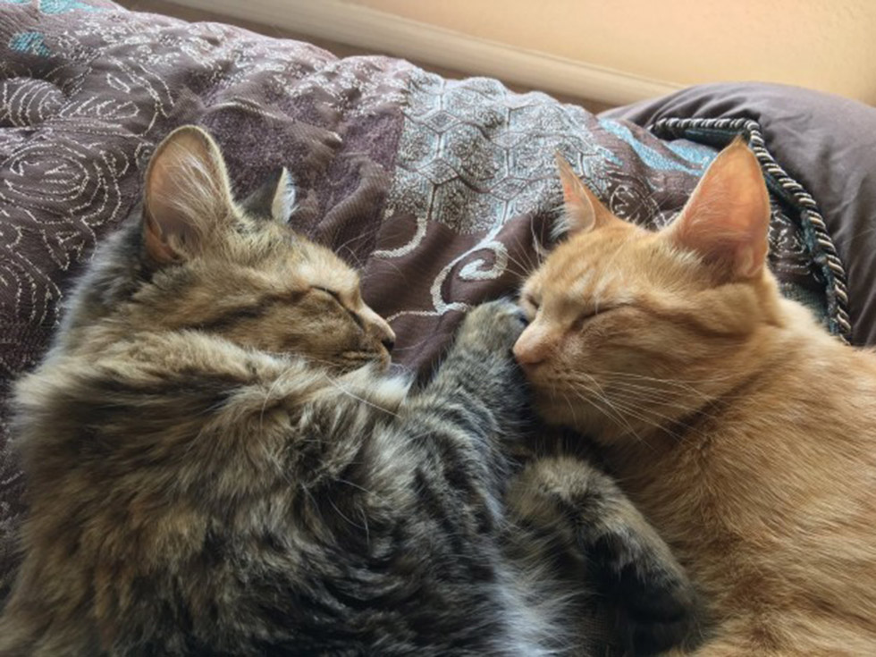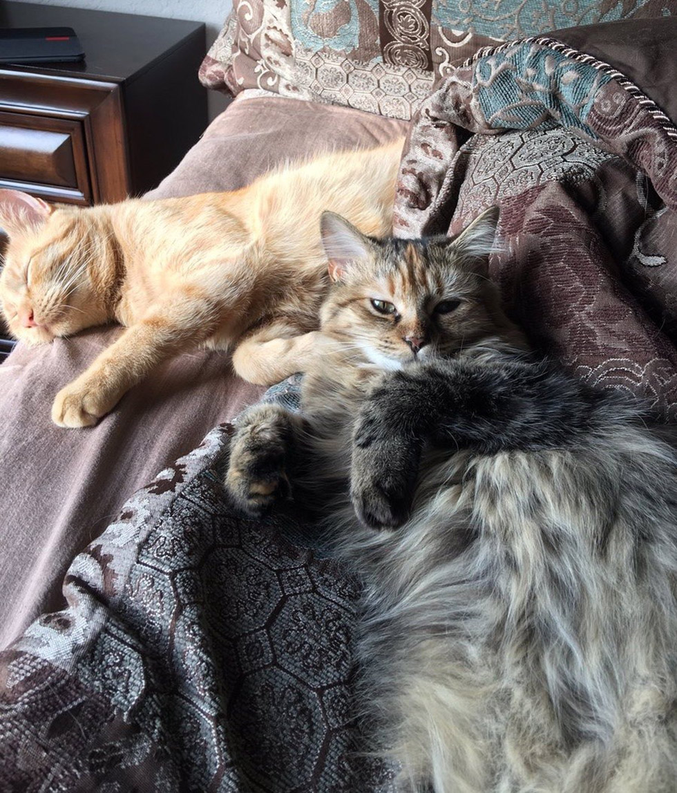 “Luna is a brown and orange Maine Coon and Louie is an orange tabby,” – James.