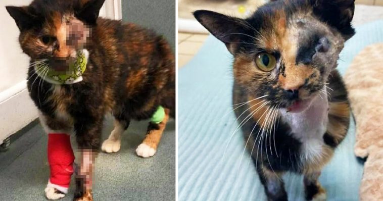 This 4-year-old tortoiseshell was run over by a bus in Luton, Bedfordshire