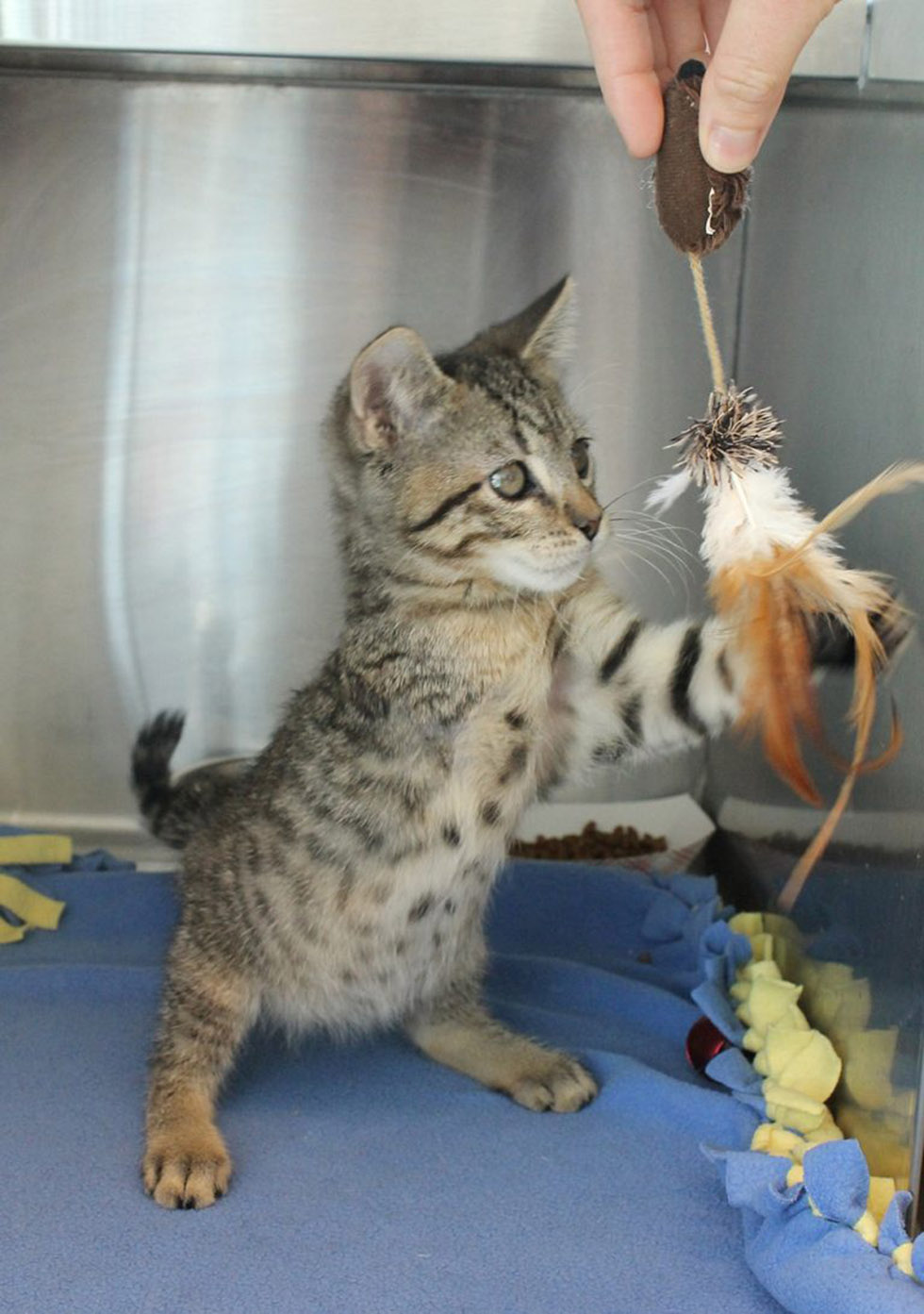 But Trooper stayed true to his name and, two months later, he’s just as rambunctious and happy as any other kitten, with a healthy love of toys. Naturally, with such a charming personality, it didn’t take long for both him and his sister to be adopted out to different homes.
