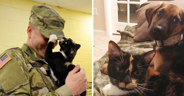 This man innocently claims that he has always been a “dog person” and he was only looking to adopt a dog. He went to his local animal shelter with the intentions of bringing home a dog; however, when he arrived he was surprised to find that no dogs were available as they’ve all been adopted! There was however one kitty, named Marbles, who was in a cage at the back of the room and the woman there said she was available.