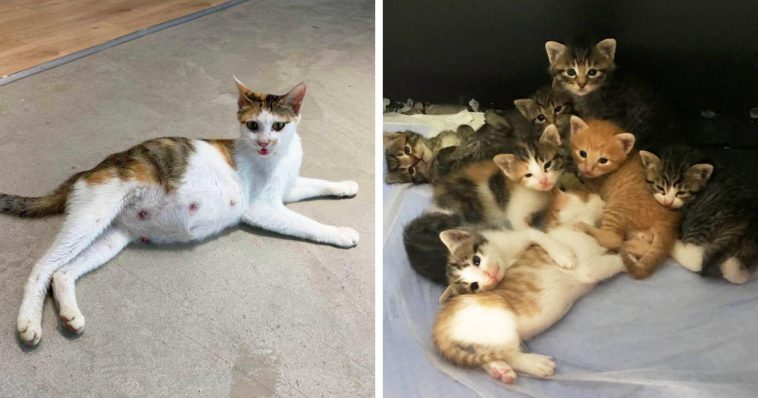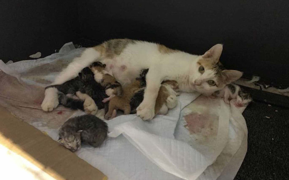 Yvonne was on the way to work one day when she spotted a heavily pregnant stray cat in the street.