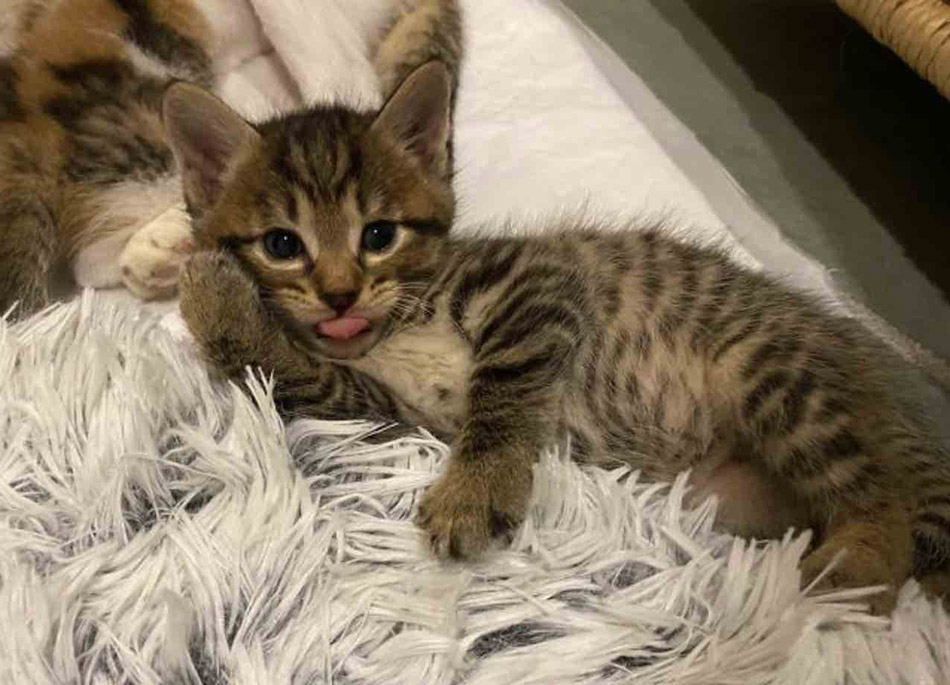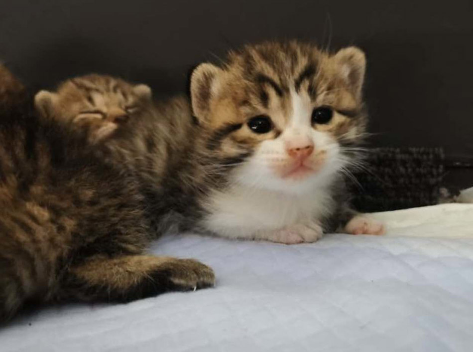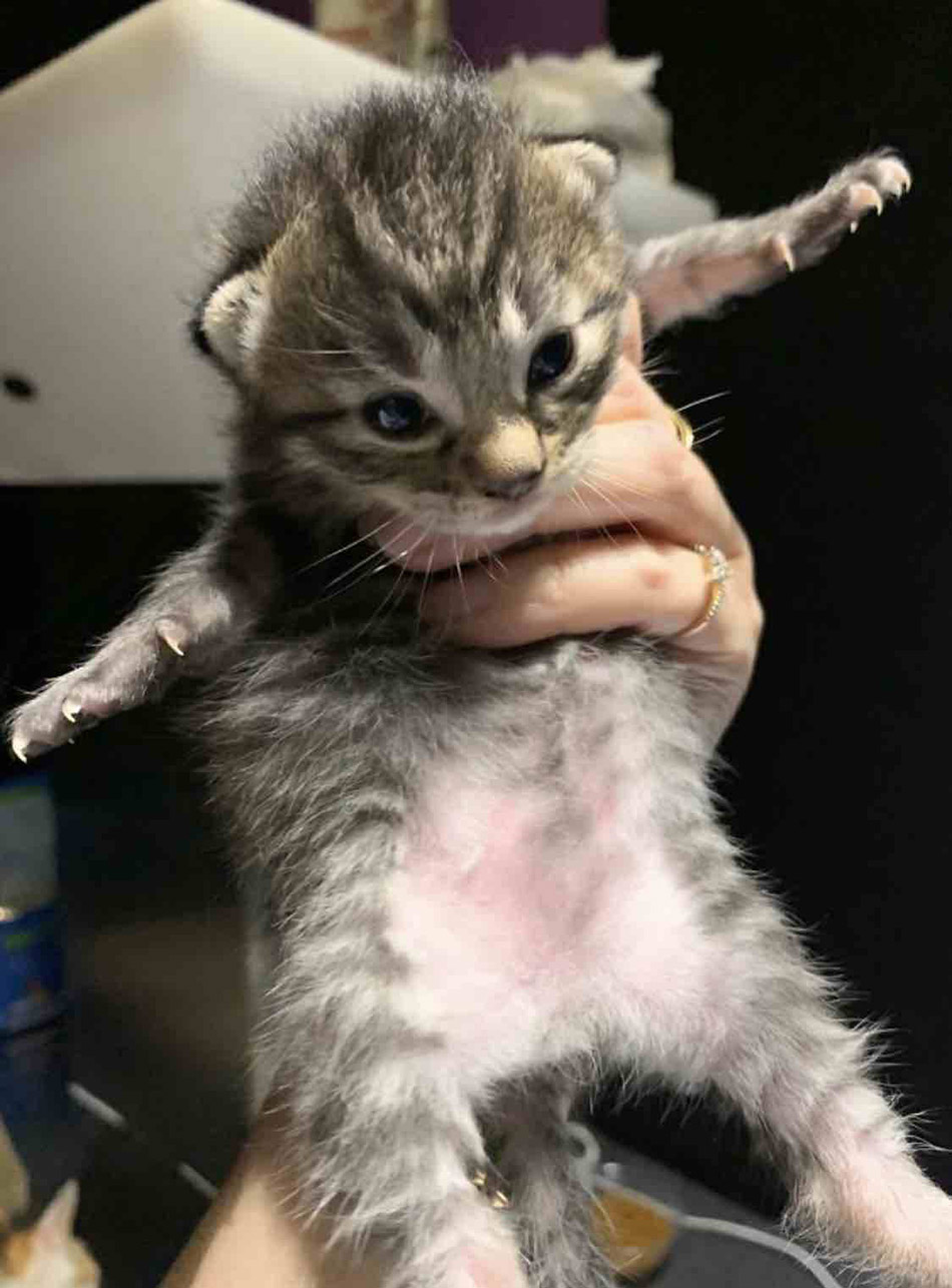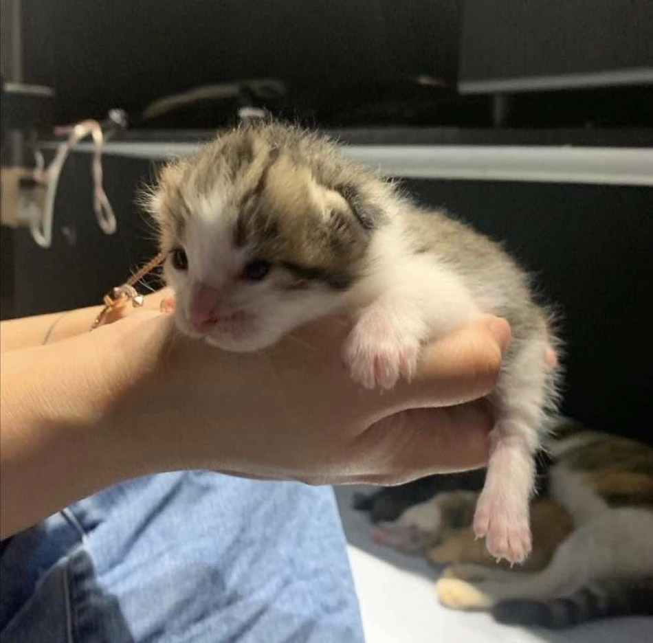 Two weeks passed and the little kittens began to open their eyes, this is No Ice, she’s the smallest one in the litter and is considered one of the sweetest.