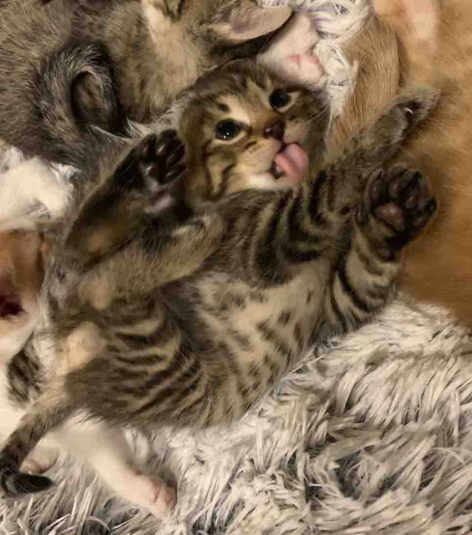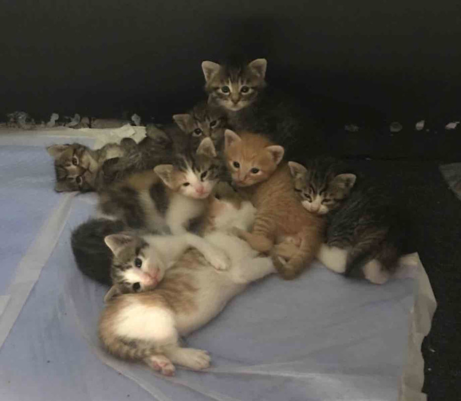And here they all are, a pile of kittens taking a nap together, totally unaware that they are being watched on by a group of caring cat ladies.
