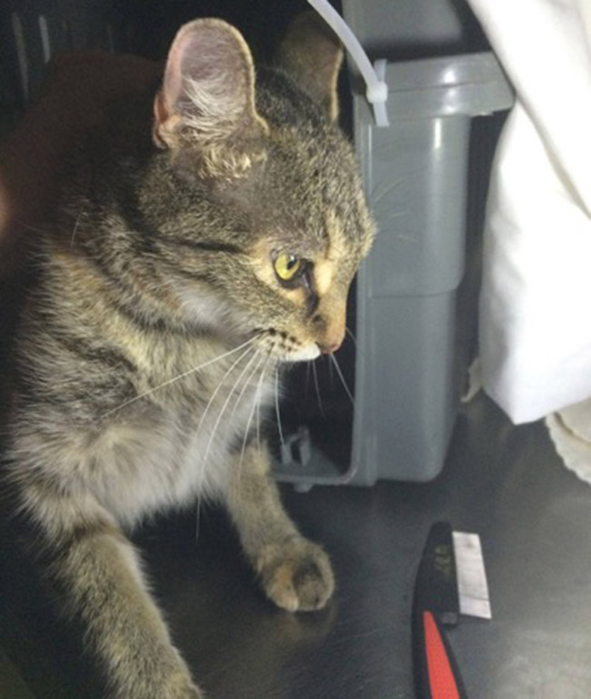 Maria, who is caring for the kittens says: “Mom is very sweet and her mix of babies are likely no more than 4 weeks old. Unfortunately one little guy has a very damaged back leg and is missing his foot. The wound has been there for awhile and is infected, but with some TLC he’ll hopefully be able to live a normal life.”